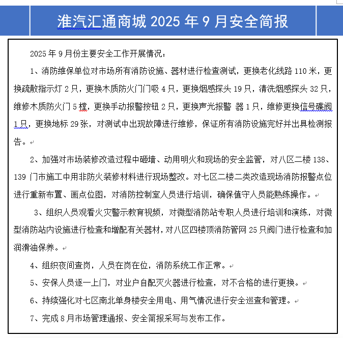 淮汽汇通2025年9月安全简报