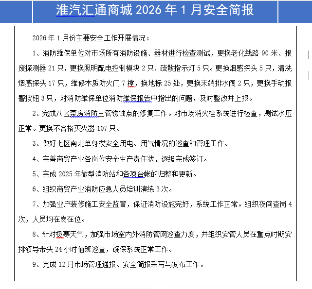 淮汽汇通2026年1月安全简报